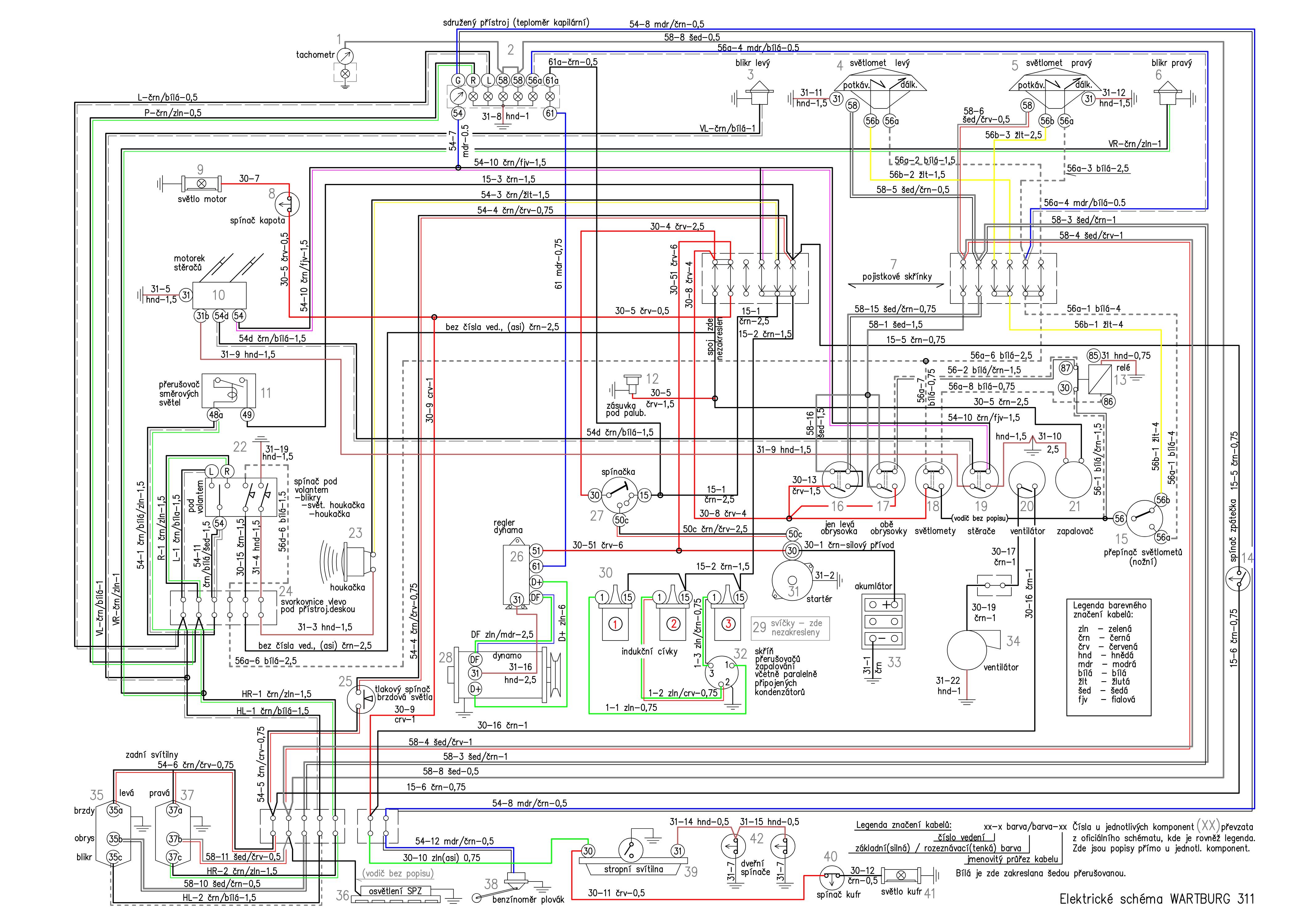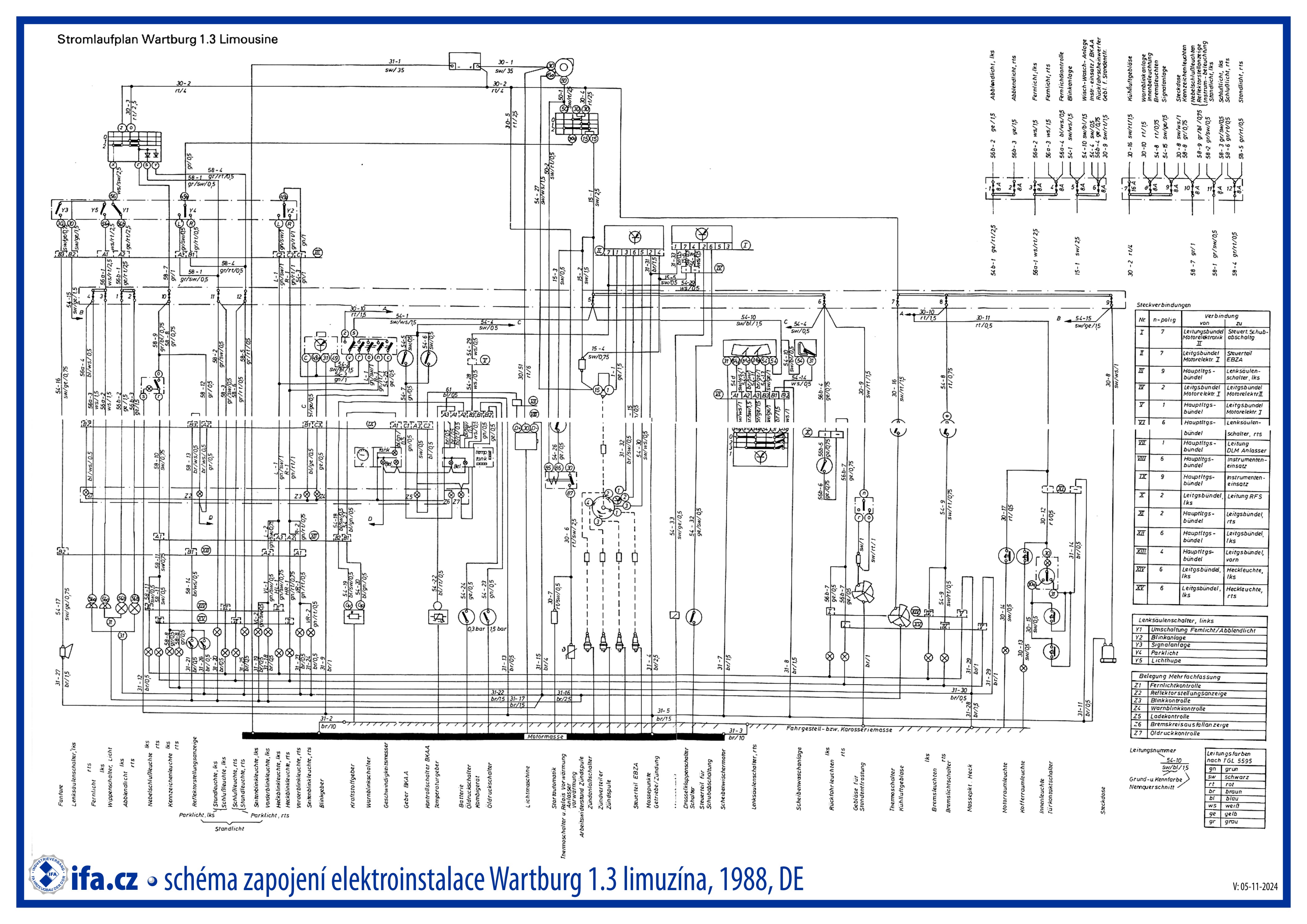Wartburg 353W, datum vydání schématu 1974 - 1981 (Původně jeden list, ale pro přehlednost rozděleno do dvou dílů.)